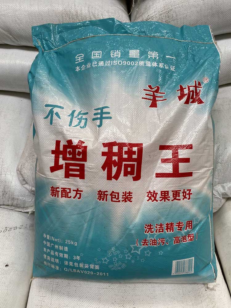 增稠王解决了用6502粉做的洗洁精当时比较稠,过后返稀的缺点,可参考增稠王配方,磺酸、AES、6501这样子的体系所做的洗洁精相当稳定,并且稳泡效果好。